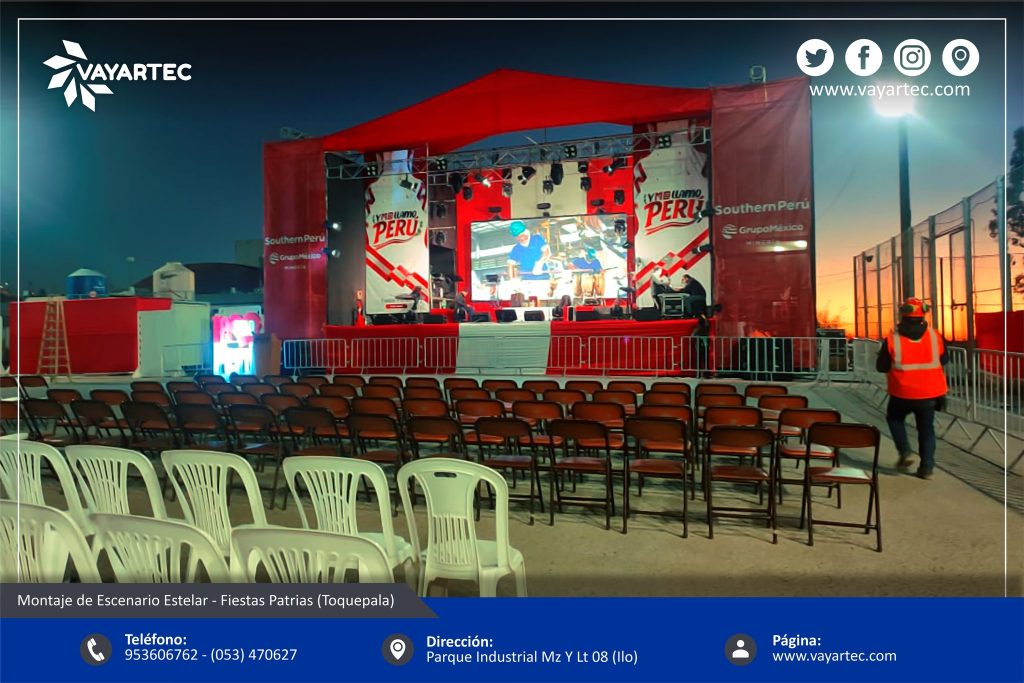 • Montaje y supervisión de estructuras: instalación de módulos prefabricados, escenarios, stands técnicos y áreas operativas, con control de estabilidad, funcionalidad y calidad.